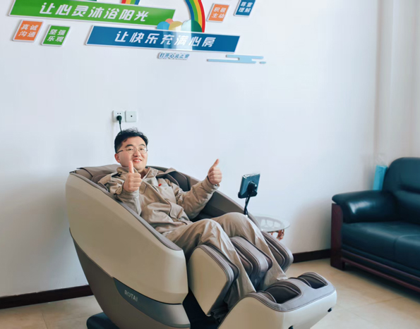 升級后的活動室設有心理咨詢、情緒宣泄、身心放松等多個功能區,配備按摩椅、飛鏢盤、擊打人形沙袋等減壓設備。室內環境溫馨、寬敞明亮,讓職工在工作之余能隨時來這里釋放壓力、調節情緒。心理咨詢區為職工開展“一對一”心理輔導、咨詢等,通過營造安靜、私密的環境,在服務職工的同時,有效保護了職工隱私。情緒宣泄區是專為職工釋放負面情緒打造的安全空間,職工可以擊打立式拳擊人形沙袋,將壓力與煩惱盡情釋放,避免情緒積壓;也可以在投擲飛鏢時專注目標、舒緩壓力,體驗競技帶來的輕松與愉悅。身心放松區按摩椅的多檔位力度調節,使職工緩解肌肉緊張與情緒焦慮,享受片刻的寧靜與舒緩。